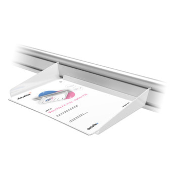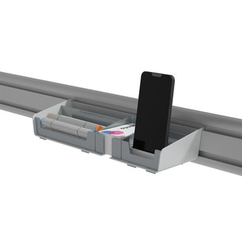 Beispielabb.: Schienensystem zur Befestigung am Schreibtisch. Halterungen und Zubehör sind nicht im Lieferumfang enthalten.