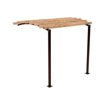 Pergola Grundeinheit, 2.910 x 2.520 x 3.020 mm (HxBxT), hier in Schokoladenbraun mit Dachstreben Variante Bogendach