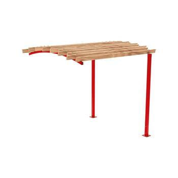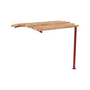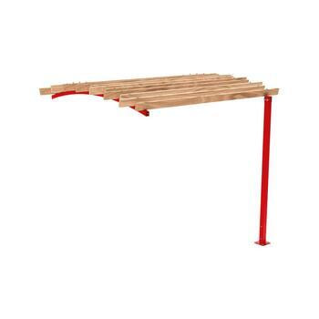 Pergola Grundeinheit, 2.910 x 2.520 x 3.020 mm (HxBxT), hier in Verkehrsrot mit Dachstreben Variante Bogendach