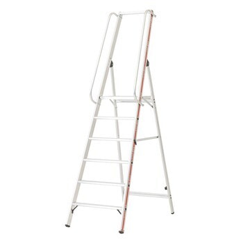 Beispielabbildung Stufenstehleiter mit Plattform: hier in der Ausführung Länge 1.530 mm, 2x6 Stufen